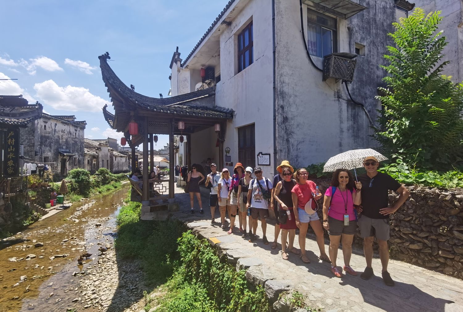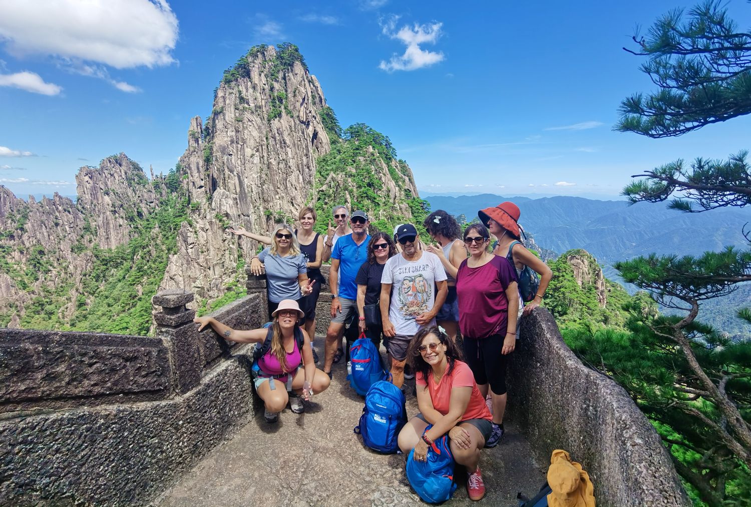 The group spent the day exploring Huangshan Mountain, visiting landmarks such as Beginning-to-Believe Peak, Brush Rock, and the Black Tiger Pine. Later, they traveled to Hongcun Village, a UNESCO World Heritage Site, and stayed in a local guesthouse arranged by our agency.